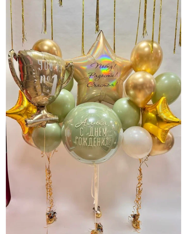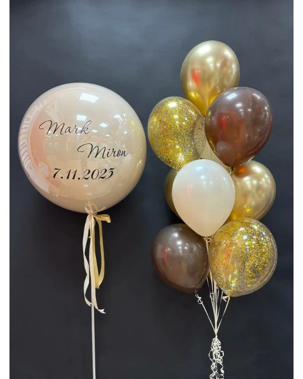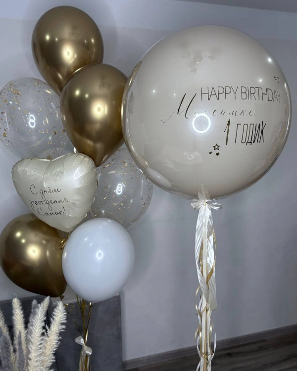 Вы можете легко купить стеклянный шар или заказать воздушные шары с индивидуальным наполнением и надписями, чтобы создать уникальное оформление под ваш праздник.